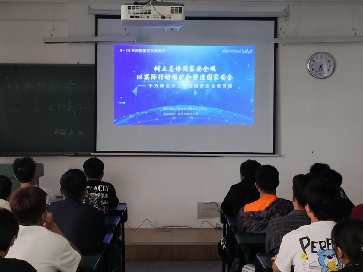组织开展国家安全日主题活动。一是组织学院全体教师集中观看国家安全日专题片,增强教师们的国家安全意识和责任意识。二是4月14日-15日各班级学生通过主题班会、手机直播等形式观看“同上国家安全一堂课”直播,并积极学习国家安全教育主要内容,同学们纷纷表示,将自觉维护国家安全,不信谣、不传谣,也不泄露国家的机密,坚决不做危害国家和人民安全的事。