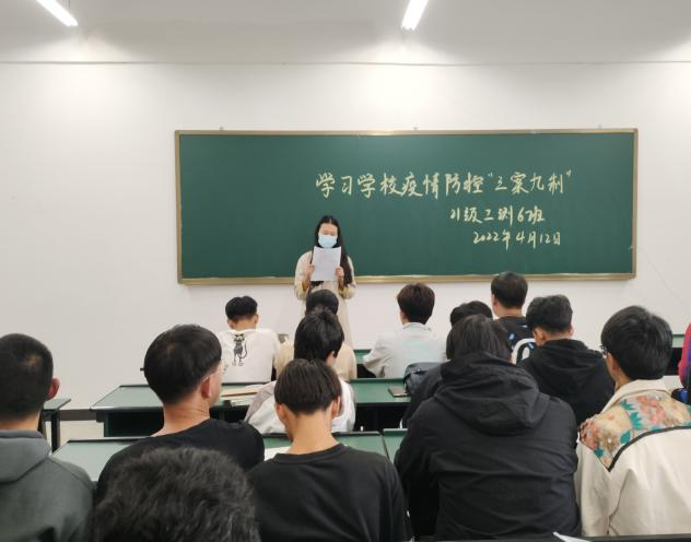 组织学习“三案九制”。一是组织全体辅导员进行专题学习和研讨。4月11日下午,学院全体辅导员在勘B203集中学习学校“三案九制”相关文件,厘清了疫情防控工作流程,分析了特殊情况的应对处理;二是积极组织学院全体教师开展集中学习。4月13日下午,学院全体教师在勘B213就学校疫情防控工作的“三案九制”进行专题学习,全面、系统地学习了当前疫情防控工作的重点内容和关键流程;三是各班级组织开展“三案九制”专题再学习。学院各班主任(辅导员)积极通过主题班会的形式开展学习,强调当前疫情防控形势以及疫情防控的利害关系,对疫情防控具体政策措施和应对流程进行了说明,同时充分利用昆明几所高校发生的疫情典型案例,以及学院内伪造假条或未经批准擅自离校受校级处分的典型情形,对学生进行警示教育。