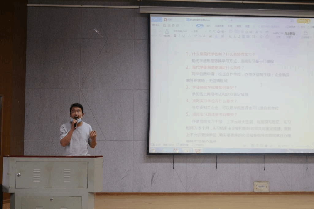 本次顶岗实习和现代学徒制讲解会的召开,使2020级学生们充分认识到了顶岗实习、现代学徒制的重要性和具体要求,为后续实习工作的安全顺利进行奠定了坚实的基础。