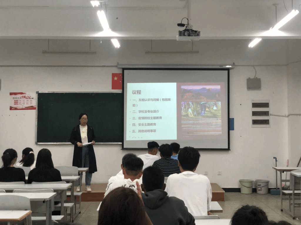 此次“开学第一课”由各班班主任、辅导员共同参与,依托新生第一次《教育性班会》课程。在班会课上,老师们对新同学的到来表示热烈欢迎,分别就学校学院基本情况、疫情防控、安全教育等方面的内容向同学们做了详细的介绍。