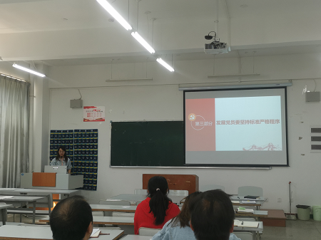 专题党课结束后,专职组织员徐蓉老师结合《中国共产党发展党员工作细则》和《中国共产党发展党员工作细则》,向党员教师们进行了专题培训。培训内容包括发展党员工作的五个阶段25个步骤,对申请入党、入党积极分子的确定和培养到发展对象的确定和考察、预备党员的接收、预备党员的教育考察和转正以及发展党员工作过程中的总要求等都进行了详细的讲解。
