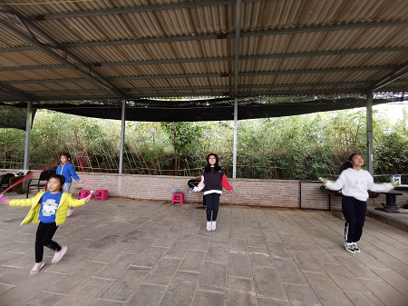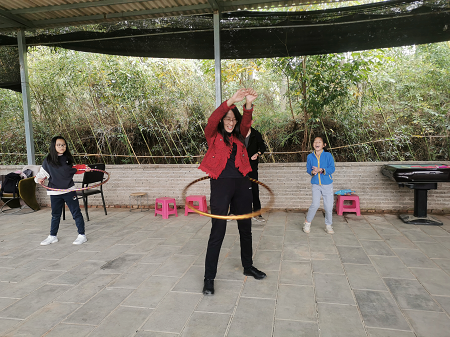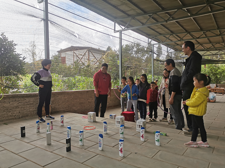 下午,老师们、孩子们进行了一场集娱乐、竞技和健身为一体的趣味活动,主要有套圈、跳绳、呼啦圈、扑克等项目。他们在运动中感受着快乐和喜悦,现场气氛热烈而又紧张,欢笑声此起彼伏。比赛结束后,学院为参与者颁发了活动纪念品。