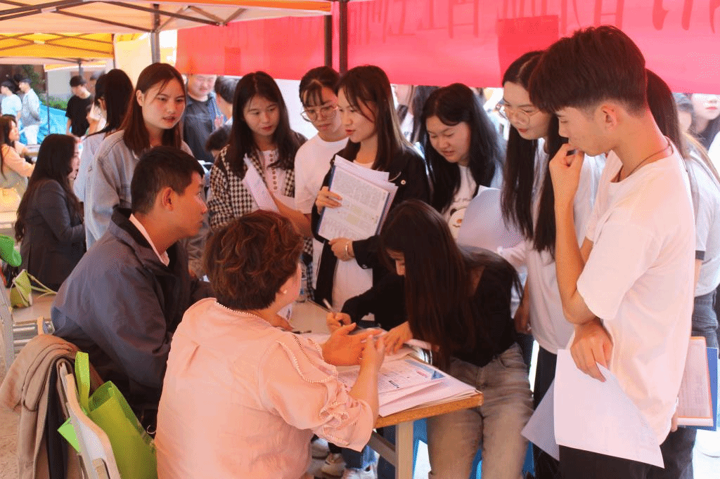 招聘会现场气氛活跃、人头攒动。校党委书记牛定柱,就业与合作处副处长钱敏,学院院长张洪以及学院部分教师、辅导员等也来到现场指导学生面试应聘,帮助同学们解决应聘存在的疑惑,热心帮助学生找寻对口且合适的工作岗位。