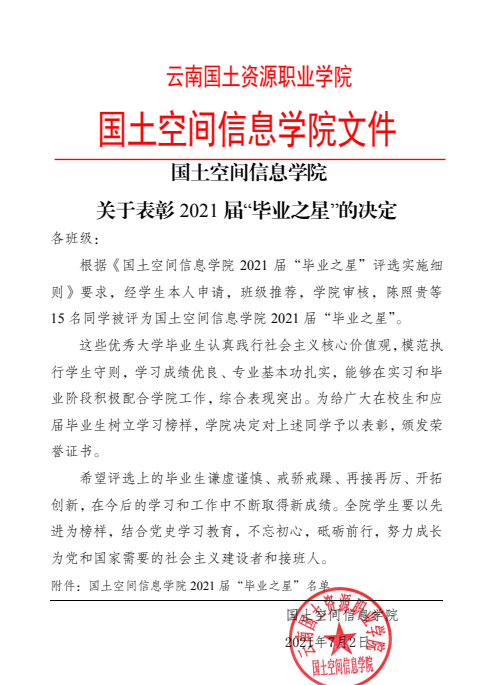 金年会jinnianhuicom关于表彰2021届“毕业之星”的决定