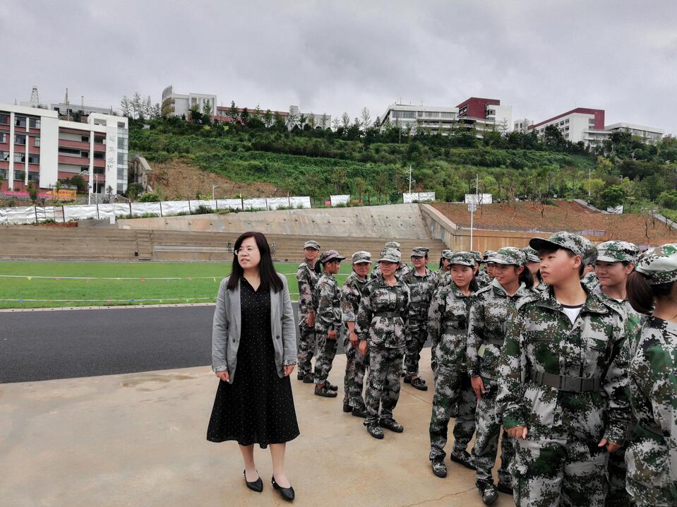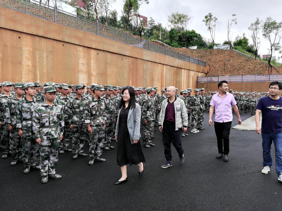 9月10日,国土管理学院张洪院长、张俊妍书记及学院辅导员、班主任一同前往田径运动场,视察看望新生军训情况。