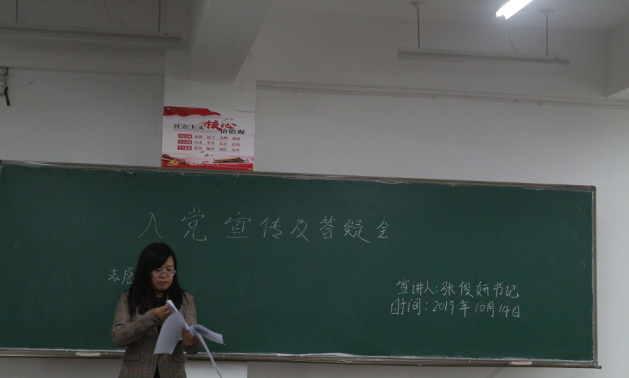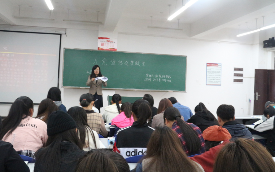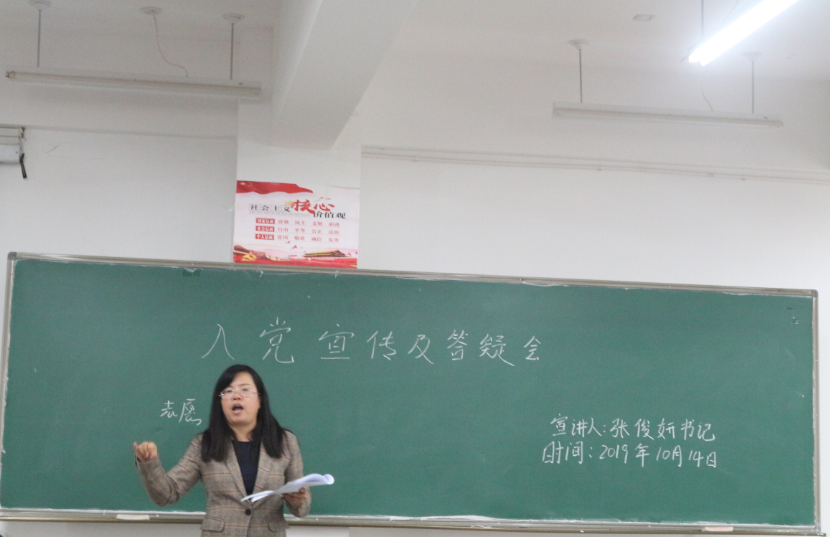 为了规范即将发展的党员质量,保持党的先进性和纯洁性,全方位考察发展对象的综合素质,同时帮助同学们对中国共产党的了解更加深刻。国土管理学院于2019年10月14日中午13:00在勘物楼B316举行了"入党宣传及答疑会"活动。主持本次活动的是金年会党总支副书记张俊妍老师,19级递交了入党申请书的全体成员参加了本次活动。