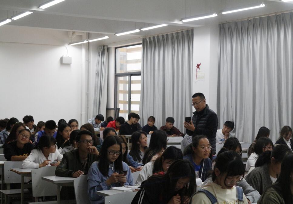 此次培训,王荣老师介绍了相机构成、相机设置、基础知识、构图事宜、拍照经验与技巧,介绍了光圈、感光度,白平衡、焦距等单反相机使用中的基本要素,分享了自己拍照经历中的趣事,例举了不同活动场景中不同的拍照方法,就如何选择好的拍摄角度和背景进行讲解,让学生干部们现场操作,通过使用自己的手机进行调焦、对光来熟悉摄影摄像。在培训过程中,王老师走到学生干部中间,与学生干部们进行互动,面对面进行摄影技巧的交流与指导,整个教室学习气氛浓厚,同学们的学习兴趣非常浓厚。