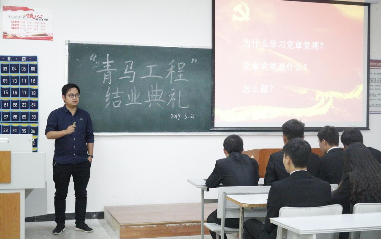 为增强学生对党的基本认识,提高学生干部党性修养,国土管理学院于2019年3月21日下午17:30在堪物楼B213教室举行第三期“青马工程”最后一讲——党课,主讲人为教务处赵心亮老师,辅导员张桂枝老师、学生会干部全体成员以及18级全体班干部参加了此次培训。