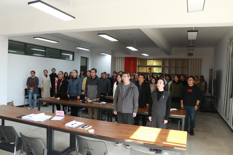 大会在庄严的国歌声中拉开序幕。党委书记苏丽丹介绍了此次会议的全部议程,经全体教师举手表决,一致同意此次全体教职工大会所有议程。