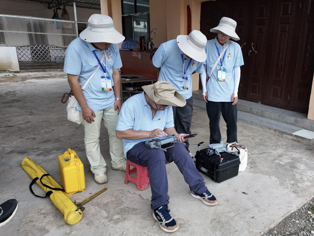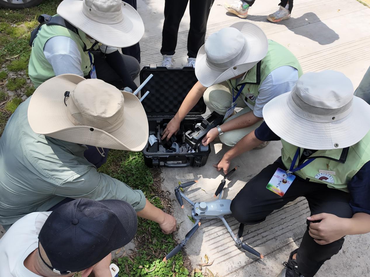 为确保航测任务顺利完成,队员们结合卫星影像对保护区待测区域做了精心规划。随后研学团师生携带专业航测设备,深入地形崎岖、植被茂密的项目核心区,克服复杂地形挑战,踏勘地形地貌,了解地物分布,根据待测区范围和精度要求,确认拍摄点并规划无人机飞行摄影航线。