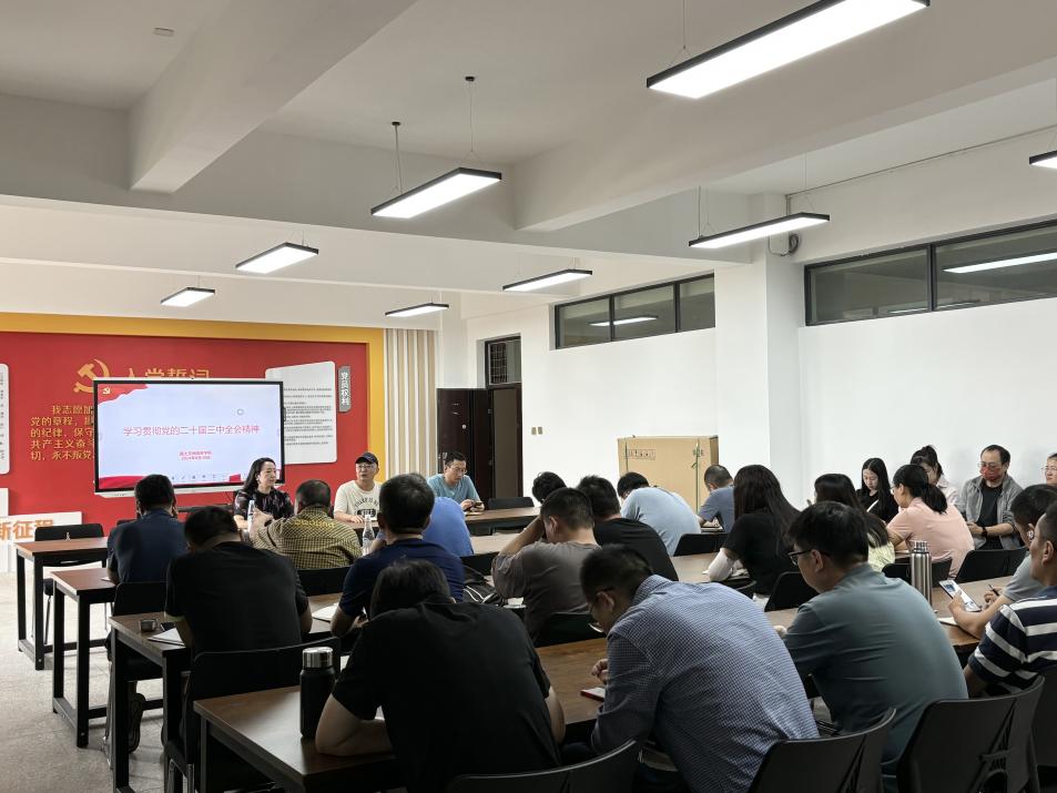 党委书记苏丽丹带领全体教师集中学习了《中国共产党第二十届中央委员会第三次全体会议公报》,指出要深刻领会全会精神,三个党支部要积极组织集体学习和个人自学,深刻认识全会的重大意义,把思想和行动统一到全会精神上来,切实把全会精神落实到新学年的各项工作中。