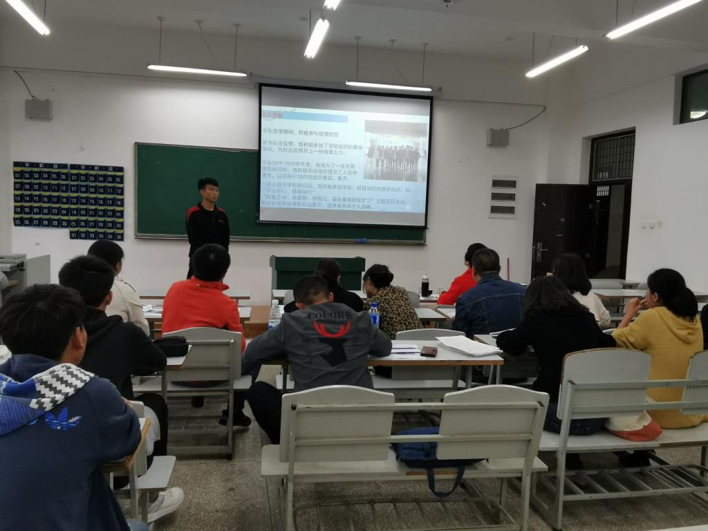 此次评选共分为中午、下午两场,19级各班(五年制班级除外)民主推选1名候选人参与全院评选,参评同学根据抽签顺序依次上台,主要对个人社会贡献、学院贡献、班级贡献和奖励情况等进行介绍,接着与会班主任就本班学生汇报做简要补充。