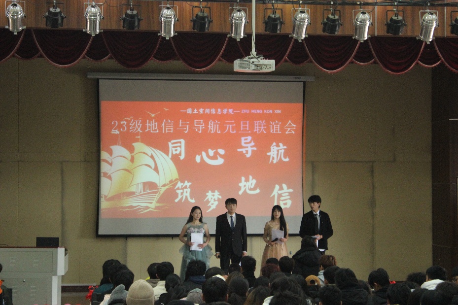 12月20日下午,金年会jinnianhuicom2023级测绘地理信息技术专业和导航与位置服务专业在光荣讲堂举行元旦联谊会,23地信导航专业辅导员、班主任、任课老师274名同学共同参加了此次活动。