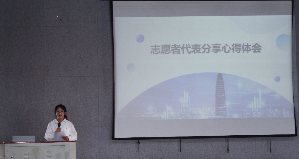 杨如婷、张字辉、杨军、柏春红4位志愿者代表分享了他们在服务期间的难忘经历和感人故事。他们为了确保活动的顺利进行,在准备阶段做了大量资料收集和学习,面对各种突发情况时展现出了沉着冷静的态度和出色的沟通协调能力。他们表示,通过这段志愿服务经历,不仅收获了宝贵的经验,也深刻体会到了团队合作的重要性。