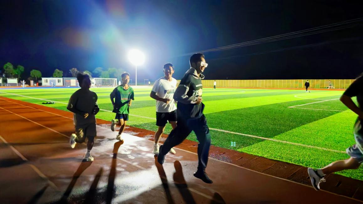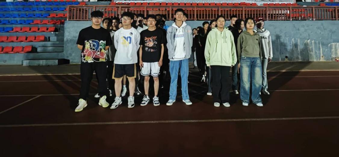 同学们身着轻便运动装,精神抖擞地聚集在学校操场。活动前,学习委员郭起声强调了运动的重要性,并提醒大家注意安全。随后,文体委员白健聪带领大家进行了简单的热身运动,确保每位参与者都能以最佳状态投入夜跑。