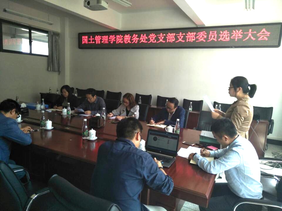 根据《中共云南国土资源职业学院委员会关于成立党委办公室党支部等11个党支部的决定》(云国土学院党〔2019〕36号)文件精神,2019年9月3日下午15:30,国土管理学院党总支于明尚楼C411会议室召开教务处党支部第一届支部委员会委员选举大会。会议由教务处处长齐武福主持,学校党委委员、教务处处长齐武福,招生考试办公室副主任李艳,教务处副处长任友理及教务处·招生考试办公室其余党员老师参会,国土管理学院党总支副书记张俊妍、党总支纪检委员魏贵东列席会议。