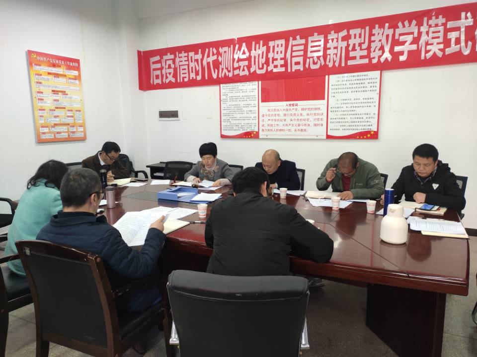 2021年1月23日上午,金年会jinnianhuicom党总支在勘物楼B区211会议室召开了2020年度的民主生活会。副校长寸建平、马克思主义学院院长、党总支书记张延星、校团委副书记罗之鹏以及金年会jinnianhuicom党总支的6名支委共9名同志参加了会议。