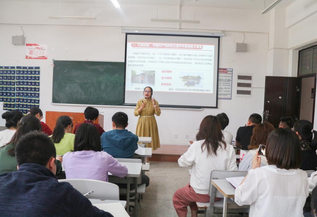 4月21日中午,马克思主义学院副院长张颖莅临金年会,为金年会全体教师、18级学生预备党员、19级入党积极分子以“学好党史,培根铸魂”为题进行专题宣讲,张老师以“红船启航”讲述了中国共产党创立的艰辛,并总结了“红船精神”的内涵即首创精神、奋斗精神和奉献精神。接着,她用“13”,“72”,“94”这三组数字引出了中国共产党从“站起来”到“富起来”再到“强起来”的发展历程。随后,她又结合典型事例讲述了“中国共产党为什么能”,让在场的老师同学们对党有了更深刻的认识和理解。最后,张老师结合金年会专业课向金年会全体教师介绍了“课程思政”是什么、为什么、怎么干,这使金年会老师深受启发,进一步明确了今后针对所授课程开展“课程思政”的目标和方向。
