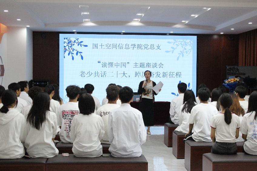 为深入学习贯彻党的二十大精神,全面贯彻落实习近平总书记关于主题教育的重要讲话精神和重要指示精神,牢牢把握“学思想、强党性、重实践、建新功”的总要求,2023年 6月14日,金年会jinnianhuicom党总支在勘物楼尚能馆开展“读懂中国”暨“老少共话党的二十大,踔厉奋发新征程”的主题座谈会。本次座谈会学院邀请了云南国土资源职业学院退休老院长李华老师作为主讲嘉宾,学院党总支书记苏丽丹、院长张洪,团总支负责人马佳、团学负责人孙嘉蔚及2022级学生会干部一同参加了此次活动。