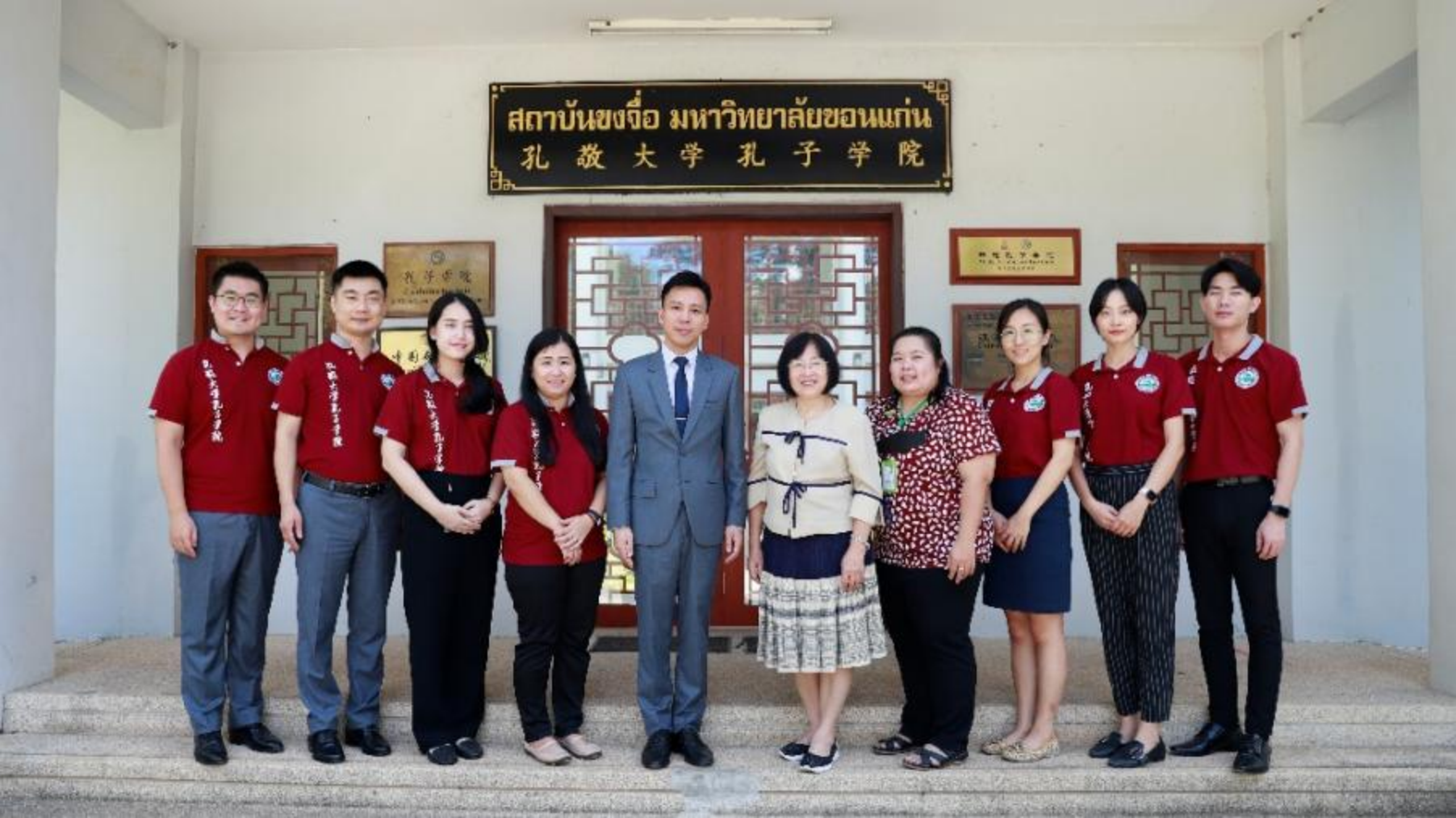2023年2月,耿军任期结束,孔敬大学孔子学院全体中泰教师和员工为他举行了离任欢送会。新任中方院长张家政先生用“感动”“感谢”“祝愿”三个词分别表达了对耿军疫情期间逆行的感动、攻坚克难取得成绩的感谢和回国发展的祝愿,和耿军一起工作的同事们也写下“莫道佛国无柳色,巴渝春绿已千山”的动人诗句赠与耿军。