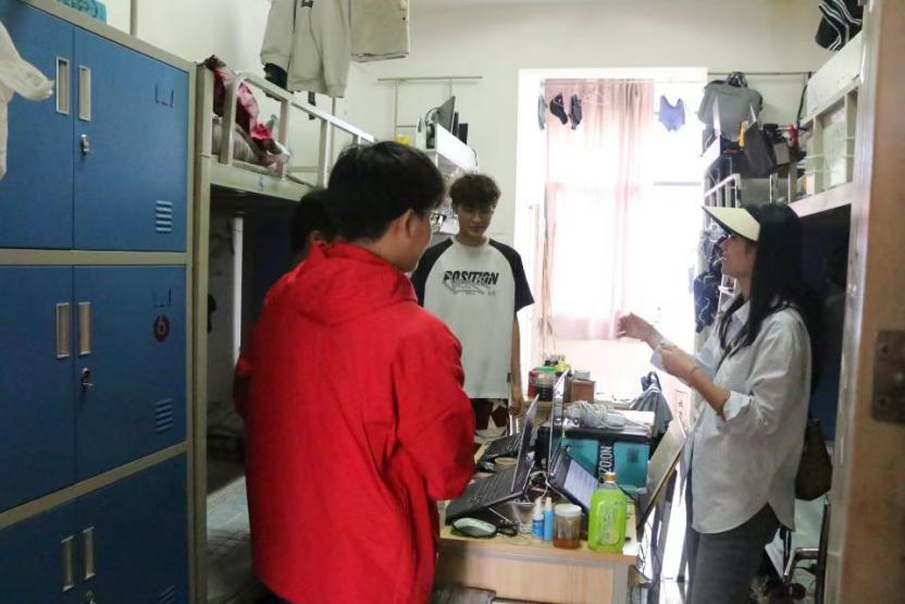 辅导员孙嘉蔚与班主任付文静、吴晓娟深入学生宿舍,将满载心意的月饼送到同学们手中,并询问同学们的生活学习状况,叮嘱假期出行注意安全,热情的话语和亲切的问候使同学们感受到了家一般的款款温情。