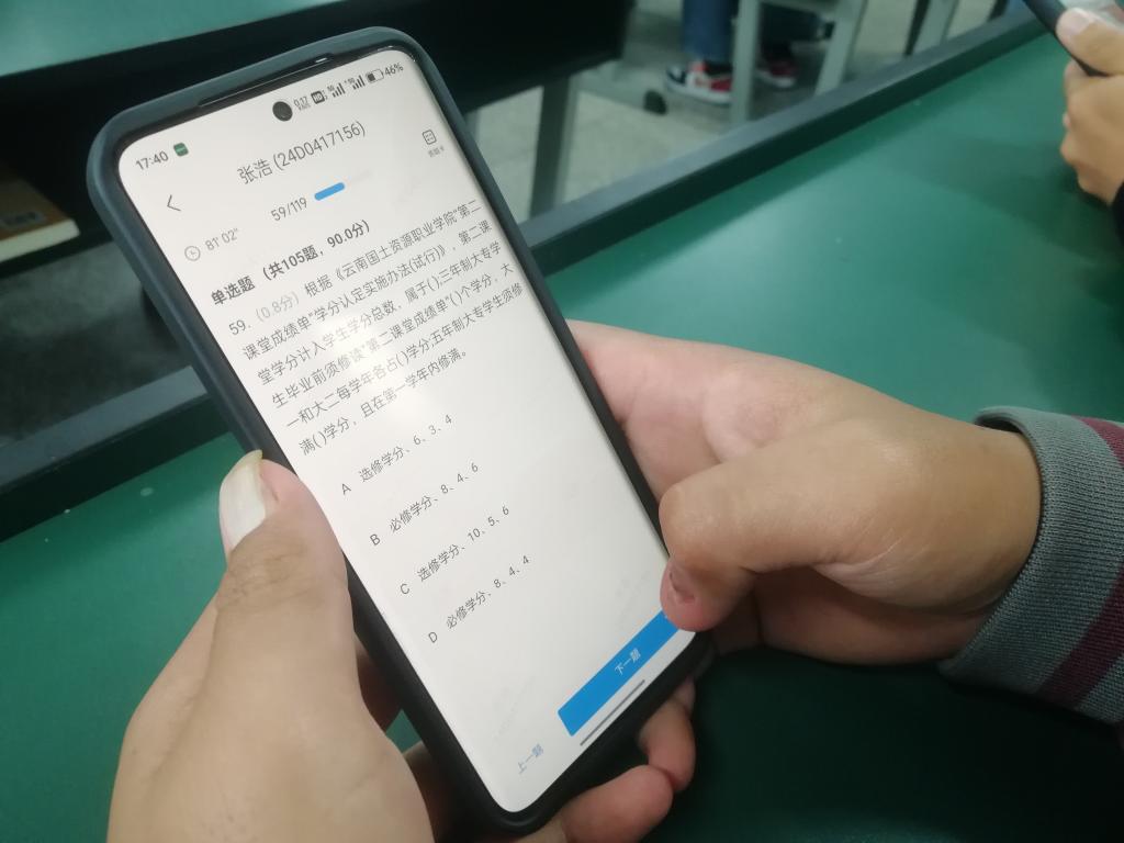 本次考试以《云南国土资源职业学院学生手册2024级》和防范电信网络诈骗知识为主,覆盖了教学管理、学生管理、宿舍管理、违纪处分办法、“第二课堂”、奖助综测、反电信网络诈骗等方面,旨在通过集中考试,检验学生入学两个月以来对校纪校规的掌握程度和反电信网络诈骗的意识能力,并不断强化学生的纪律意识,促进学生养成遵守校纪校规的良好意识。