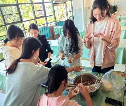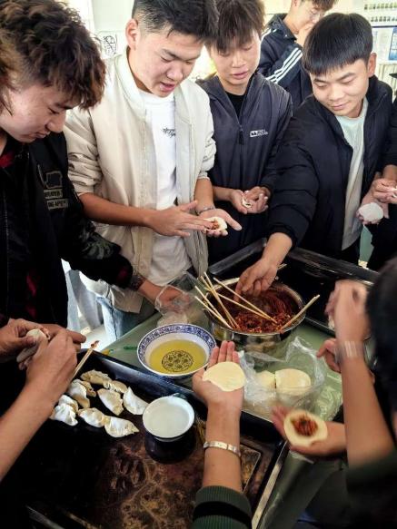 下午2点活动正式开始,同学们带着满心的欢喜和期待,4—5人围坐一桌,有的展示着自己的手艺,有的认真学习,有的则相互交流技巧,包出了各式各样、充满个性的饺子,大家有说有笑,边包饺子边分享这一学期的欢乐时光。