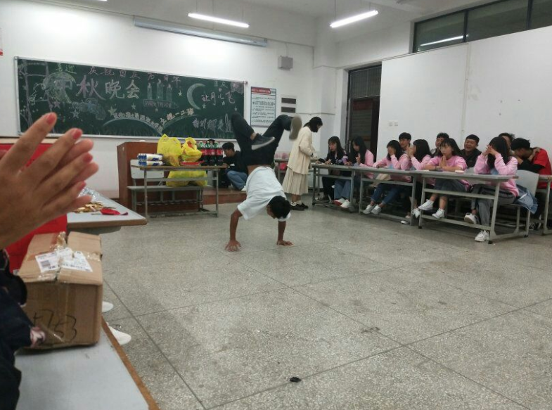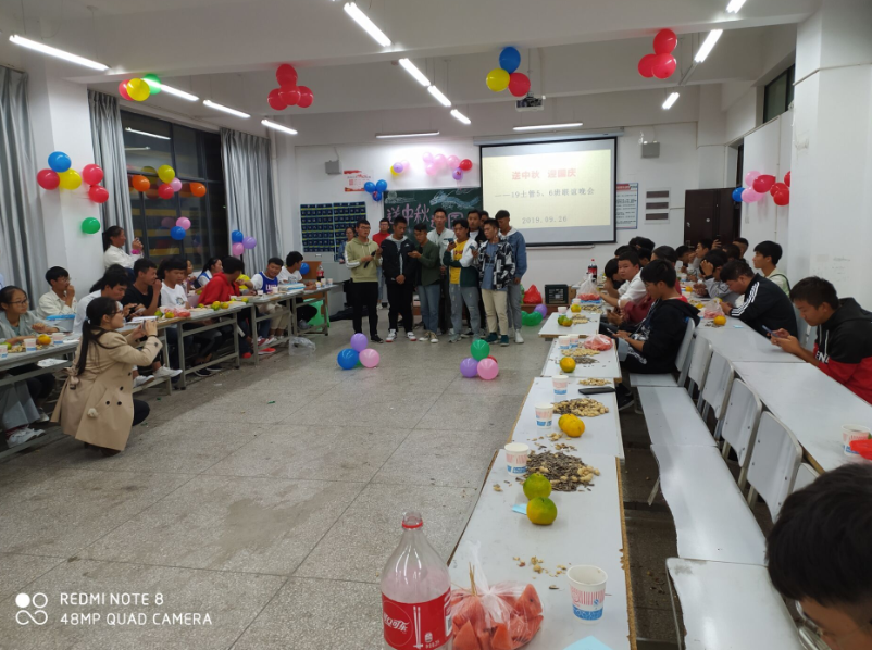 十一假期来临之前,国土管理学院2017-2019级各班在勘物楼教室举办“庆中秋迎国庆”或“送中秋迎国庆”晚会。晚会以学生班级自行组织为主。同学们精心布置的教室,桌子上摆放多种瓜果零食。晚会开始后,同学们个人或集体的形式登台的表演各式各样的节目。