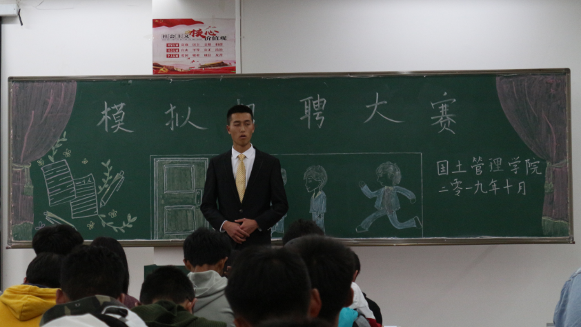 为帮助广大同学树立职场求职意识,让学生提早对招聘和求职有一个真实、客观的了解,全力做好国土管理学院就业服务工作,金年会于2019年10月17日晚19:00点在勘物楼B316举行模拟求职大赛。担任本次比赛的评委有金年会党总支副书记张俊妍老师、团总支书记申锦华老师,辅导员张甲子老师、赵烨老师。