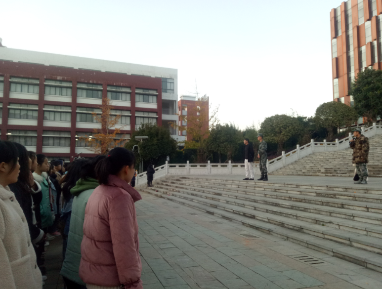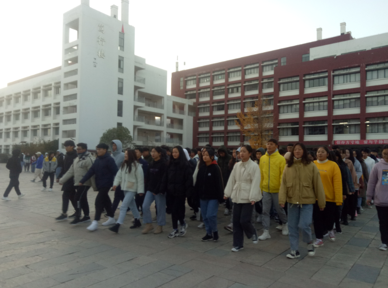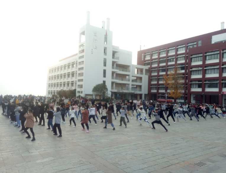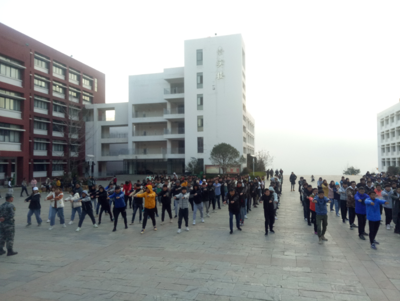 阳宗湖畔,破晓之时,薄雾之上,寒风凛冽,但国土管理学院的同学们有着不怕冷的精神,早早聚集在国土广场,准备接受考核。在军事爱好者协会成员的指挥下,同学们声音洪亮,动作整齐划一,两分多钟的考核里表现出来的是19级同学为期一个多月的辛苦付出。考核结束后,魏老师对各班进行评价,充分肯定了同学们练习军体拳取得的成绩,但也指出了其中存在的问题,希望同学们认真练习,天气越寒冷越要勇于锻炼,以增强体质、磨练意志。
