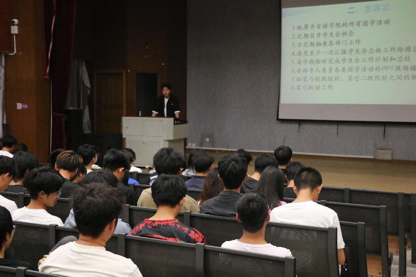 最后,学院学生会执行主席徐康介绍了学生会各部门的工作情况,以及各部门之间应如何做好衔接,提高学生会的工作效率。此外,他还强调,团总支学生会是一个锻炼自己、提高个人能力的平台,希望各个共青团员能够在提高个人发展的同时,起好带头作用,坚定理想信念,树立发展观念,为金年会团总支学生会的发展献计献策。