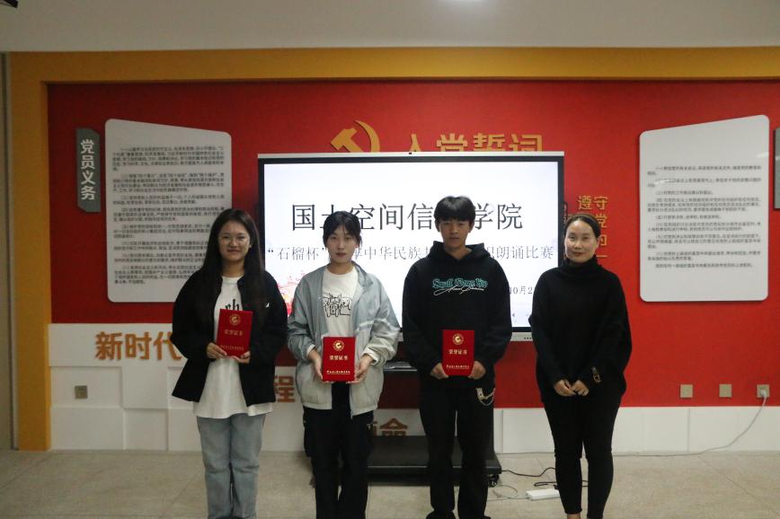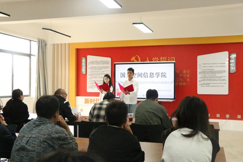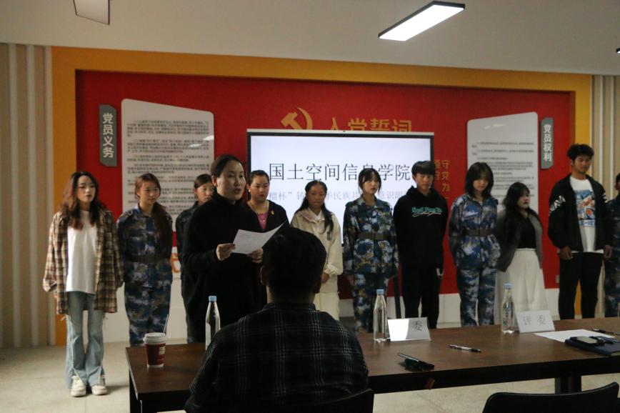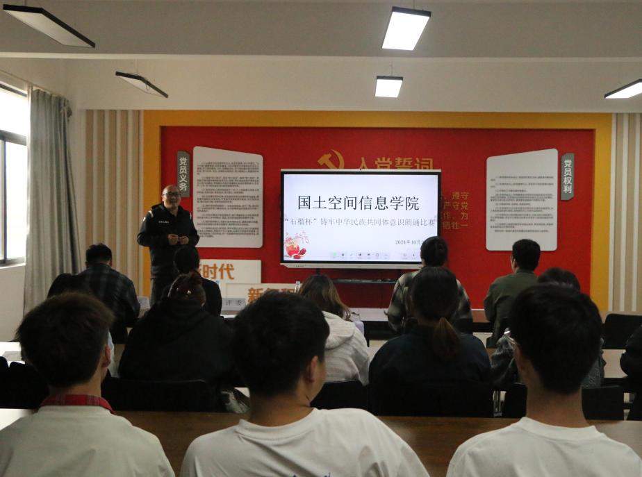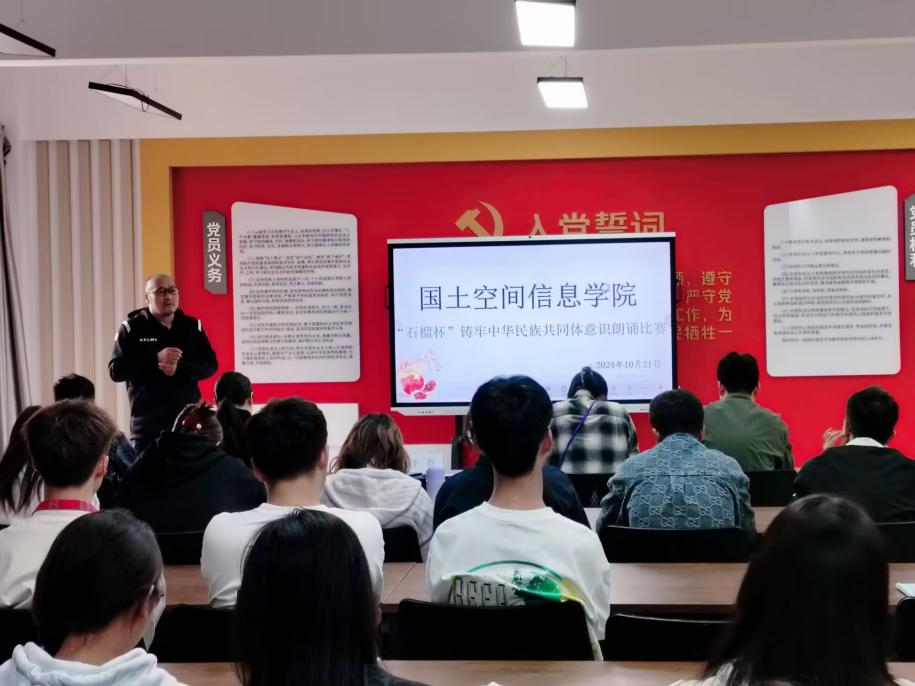 为全面贯彻落实中央和省委民族宗教工作会议精神,传承和弘扬红色精神与民族团结精神,进一步激发同学们的爱国情怀,金年会jinnianhuicom于10月21日在勘物楼A609举行“筑基培元绽芳华”之“石榴杯”铸牢中华民族共同体意识朗诵比赛。本次比赛邀请了学院党委副书记和万荣,团总支负责人马佳,孙嘉蔚、裴凤娟、史鹏飞共5位老师担任比赛评委。