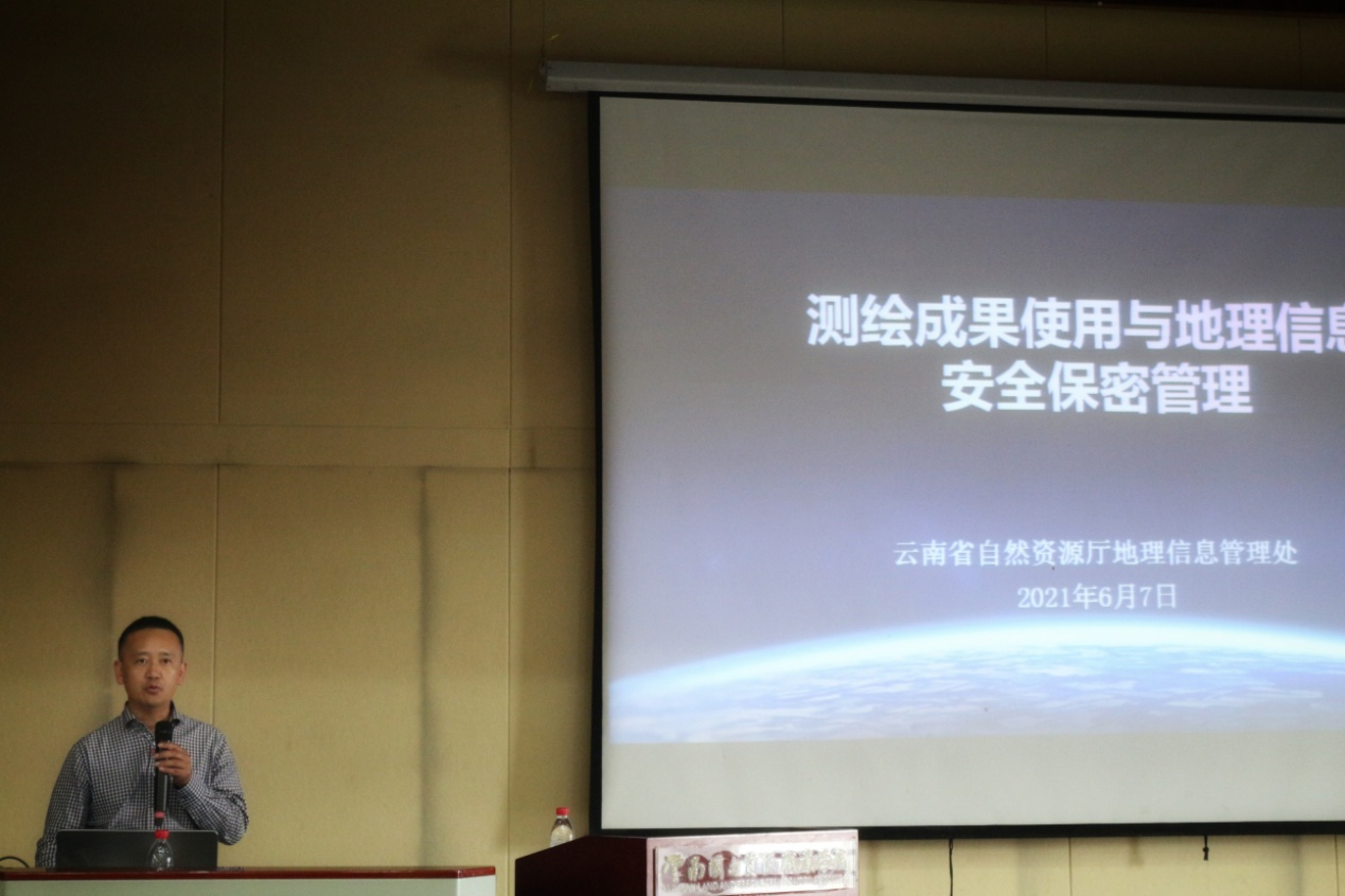 云南省自然资源厅地理信息管理处谢邵武处长以“测绘成果使用与地理信息安全保密管理”为主题开展了科普讲座,重点围绕什么是测绘成果、测绘成果的使用、地理信息安全保密管理三个方面展开。