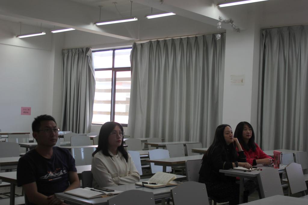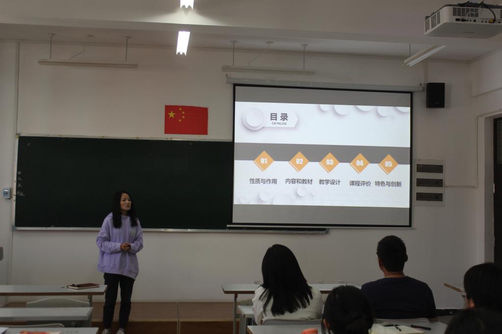 本次比赛共分为说课和提问两个环节。参赛老师各个胸有成竹、沉着应战,相继登上讲台进行说课。教师们从教材、学生、教学方法及教学理念、教学过程等方面入手,全面阐述说课内容。教师们的说课设计结构合理,重点突出,理论依据充分,展现了各自的教学特色。各评委老师也分别对参赛老师的表现进行了点评,并提出了改进的意见。