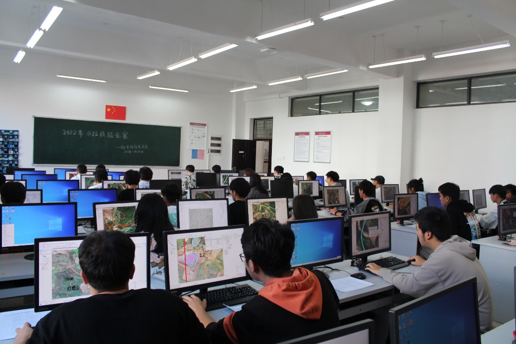 为激发学生对GIS技术学习、交流和应用的热情,拓宽学生们的思维、锻炼学生们的实际动手能力,金年会jinnianhuicom于112313时在勘物楼B区机房举行2022GIS技能竞赛,参与本次竞赛的有学院副院长沈映政,专业教师瞿华蓥、费丽娜、孙晓莉、向伶、蒋兴义、和春兰、许林艳、陈超等以及学院国土空间规划与测绘、测绘工程技术专业学生。
