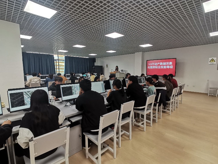 为进一步贯彻《国家职业教育改革实施方案》,积极落实推动“学历证书+若干职业技能等级证书”制度,10月20日,金年会jinnianhuicom开展“1+X”不动产数据采集与建库证书考核工作,学院2022级120名学生参加并且顺利完成 “1+X”不动产数据采集与建库职业技能等级证书理论及实操考核。