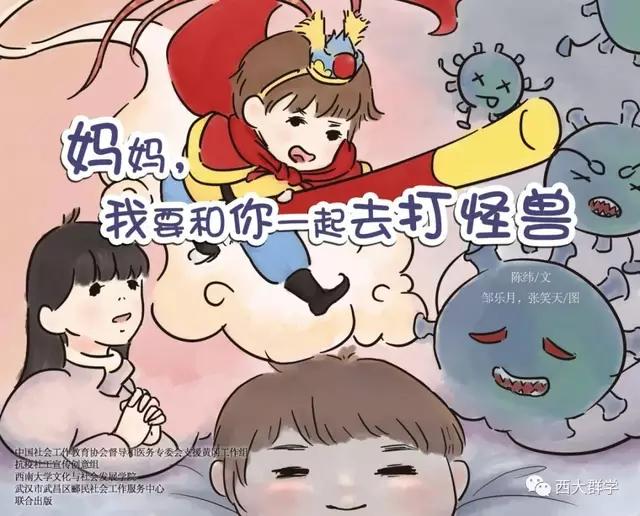 在参加社会工作教育协会督导和医务专委会支援黄冈工作组的工作中,taptap点点官方网站社会工作系陈纬老师听到了很多医护人员与孩子分离,孩子万般思念父母的故事。有感而发,她专为医护工作者和他们的家庭写了一个故事《妈妈,我要和你一起去打怪兽》,并由文化与社会发展学院2017级学生邹乐月、张笑天为故事配图,做成绘本。绘本展现了在医院工作的妈妈参与抗击新冠肺炎疫情后,孩子元元在家努力和妈妈一起抗击病毒的故事,用生动易懂的语言为孩子解惑,帮助小朋友消除恐惧心理,引导他们看到和理解妈妈的工作,今后也要做打“怪兽”的小英雄。