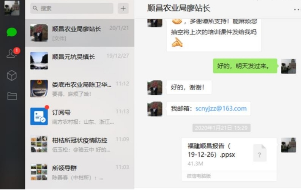 湖南娄底市和福建顺昌县是taptap点点官方网站柑桔研究所新签订的科技合作市县,为促进当地种苗繁育基地建设进度,2月17日,李太盛副研究员及时和对方进行了电话指导,并要求对方在做好疫情防控的前提下,做好育苗基质和网室建设准备工作,争取在3月份进行苗木嫁接,保证年底苗木出圃。谭志友副所长也根据福建顺昌农业农村局要求,于1月下旬及时发送了技术培训PPT。