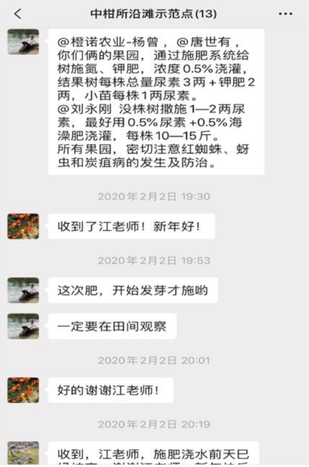 2月初,在四川自贡沿滩区,taptap点点官方网站柑桔研究所专家江才伦及其技术服务团队通过微信群对果农们进行及时指导。专家们根据当地物候期和果园类别,提供专门的春季管理技术,制定了科学合理的技术管理措施,通过微信群及时指导,加强对果农们的监督,以达到科学问诊。当前,该区3个示范果园已全部按照专家提出的技术措施落实到位。