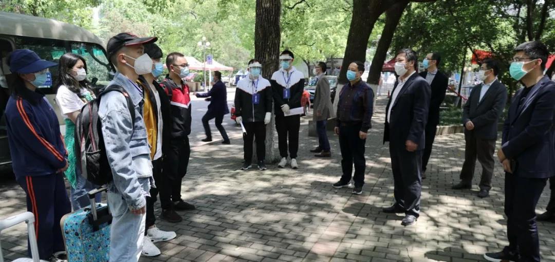 接站现场,打印的每个学生返程站点和时间点的行程表,在他们手中被反复勾画得皱皱巴巴,第一时间接待久违的同学们安全返校,是老师们最质朴的“愿望”。为保证精准、安全、有序接送,让同学们在到达的第一时间能上车返校,学工部门对提前返校同学的到站信息进行了精准统计,并安排5座、22座、38座、48座等多种车型待命,保证同学“即到即返校”,最长等待时间不超过30分钟,上座率不超过50%。