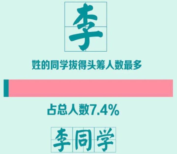 值得一提的是,在本届大一新生中,有757人姓“李”,相当于每14名大一新生就有一名姓李的同学,同名同姓的也不少“王茜”“张杰”“张婷”“张馨月”这几个名字分别有6人,“陈颖”“王艳”“张欣”分别有5人。