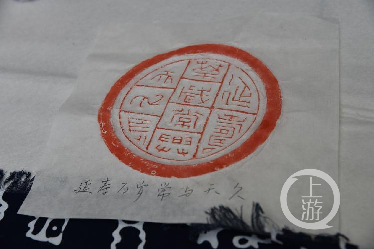 在一片此起彼伏的敲击声中,杨晓薇同学结束了15分钟的传拓体验,擦了擦额头上的汗。 “看似只要不断敲击拓板,实则可是个体力活儿呢!”她笑称,从平铺宣纸到扑拓排气,从拓墨拓色到揭纸晾干,每一步都需要耐心专注的发力,才能使拓印纹路清晰、颜色均匀、立体感强。“柔韧的宣纸、雕刻书法艺术、传拓技艺,小小的拓印处处凝结着古人的智慧,而这些都值得我们青年人学习传承。”她感慨地说到。
