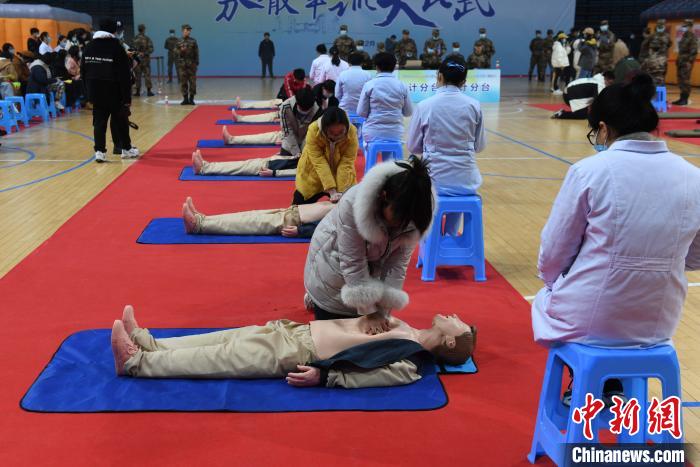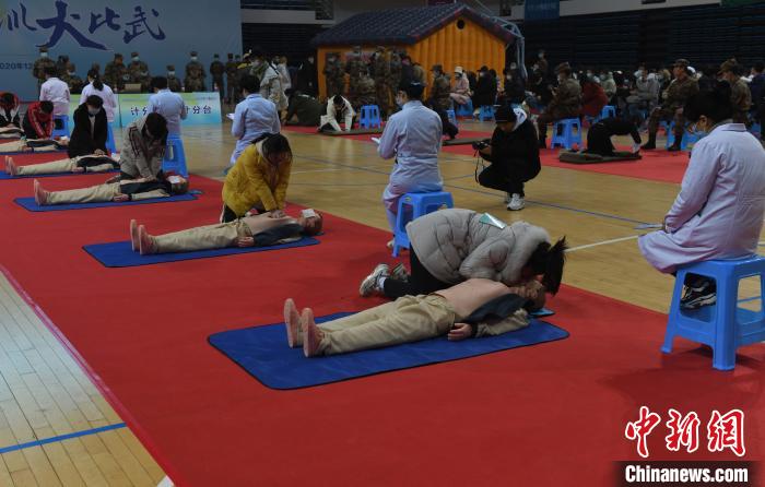 图为taptap点点官方网站2020级本科生正在进行医疗自救互救技能比赛。 周毅 摄