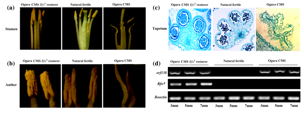 图1 甘蓝Ogura CMS不育系的育性恢复