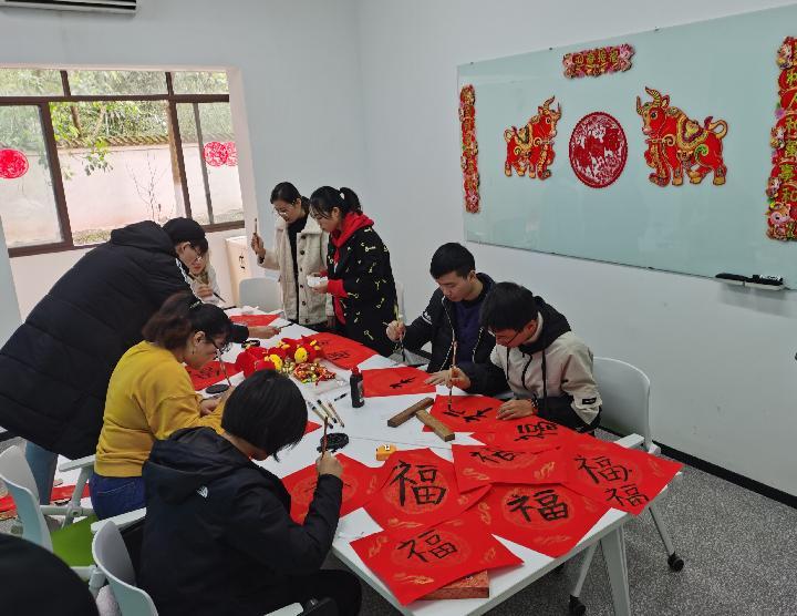 2月9日下午,taptap点点官方网站寒假留校的同学们在写福字。 taptap点点官方网站 供图