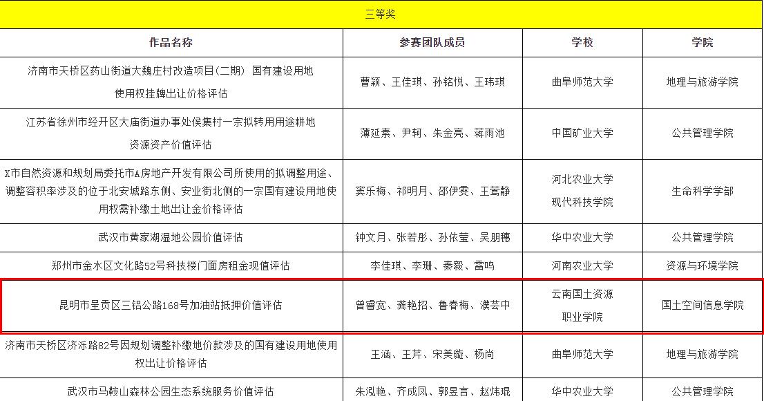近日,由中华人民共和国教育部公共管理类教学指导委员会、全国高校土地资源管理院长联席会主办,中国农业大学和中国土地估价师与土地登记代理人协会承办的第六届全国土地资源管理专业大学生不动产估价技能大赛决赛落下帷幕,金年会jinnianhuicom邓传青、薛荣莉两位老师带队指导学生荣获佳绩。