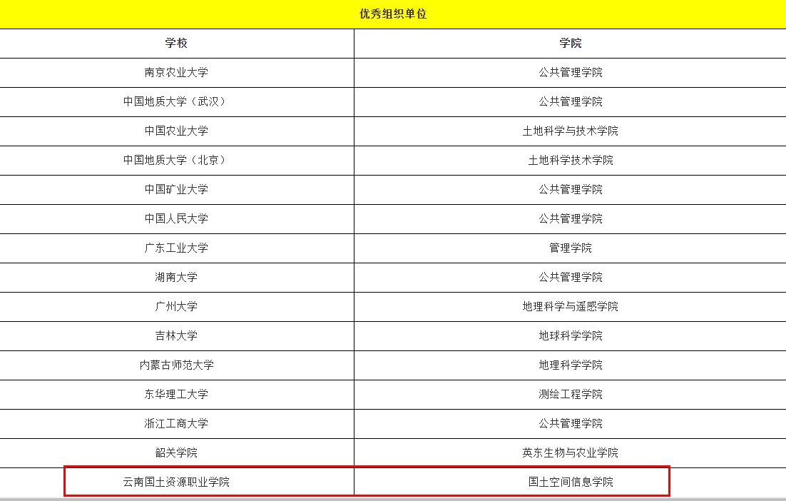 金年会邓传青老师带领的学生团队荣获二等奖,薛荣莉老师带领的学生团队荣获三等奖,邓传青老师荣获优秀指导老师奖,金年会jinnianhuicom荣获优秀组织单位奖。此次比赛我校是唯一一所获奖的高职院校,彰显了我校进入“双高”建设以来,尤其是国土资源调查与管理专业群在“双高”建设中致力于以专业群建设为龙头,打造高素质教师队伍同时,积极主动探索高素质应用型人才适用于市场需要的培养途径。
