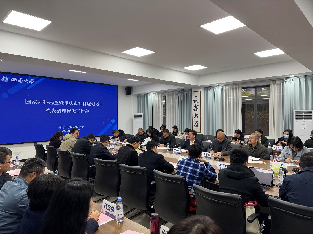 为切实加强和规范学校哲学社会科学研究项目管理,推动在研项目高质量完成,近期,学校召开国家社科基金暨重庆市社科规划项目检查清理督促工作会。副校长邹芙都出席并讲话。重庆市社科联相关部门负责人及学校各人文社科单位主管科研领导、科研秘书、教师代表等参会。