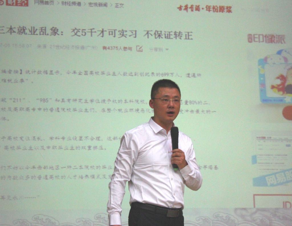 接着,江老师通过分析企业用人标准,让同学们进一步认识到了如何提高自身的素质和能力,他还强调一份好的工作要同时满足收入、发展、稳定、地位、安全以及福利六个方面,而选择一份好的工作就是进入一个好的行业。
