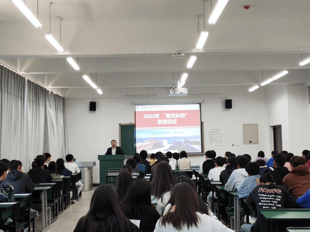 15日下午,学院举行“寒衣补助”发放仪式,学生处副处长钱学飞、学院党总支书记高昆及22级辅导员集中为受助学生发放“寒衣”,收到寒衣的同学脸上都洋溢着幸福的笑容,并对学校、学院的关怀表达了谢意。